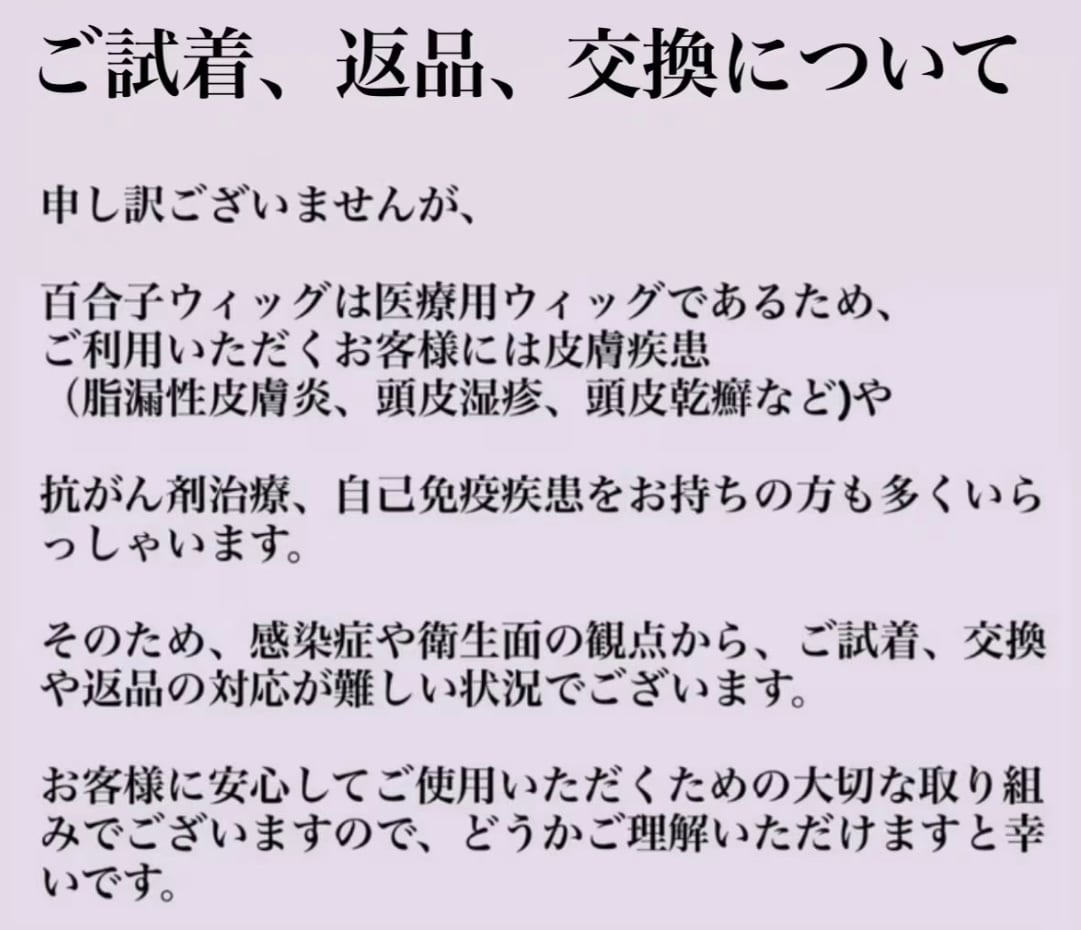 ウィッグ製品と関連商品は、交換·返品には応じません。