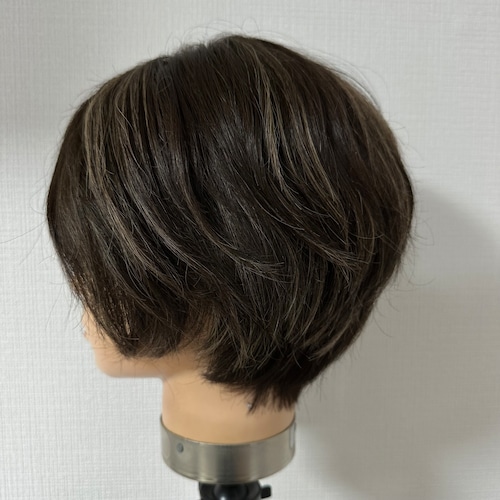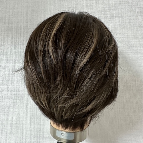 3Dウィッグ 商品名:みちこ ダークブラウン系ハイライト パーマ 百合子ウィッグレミー人毛
