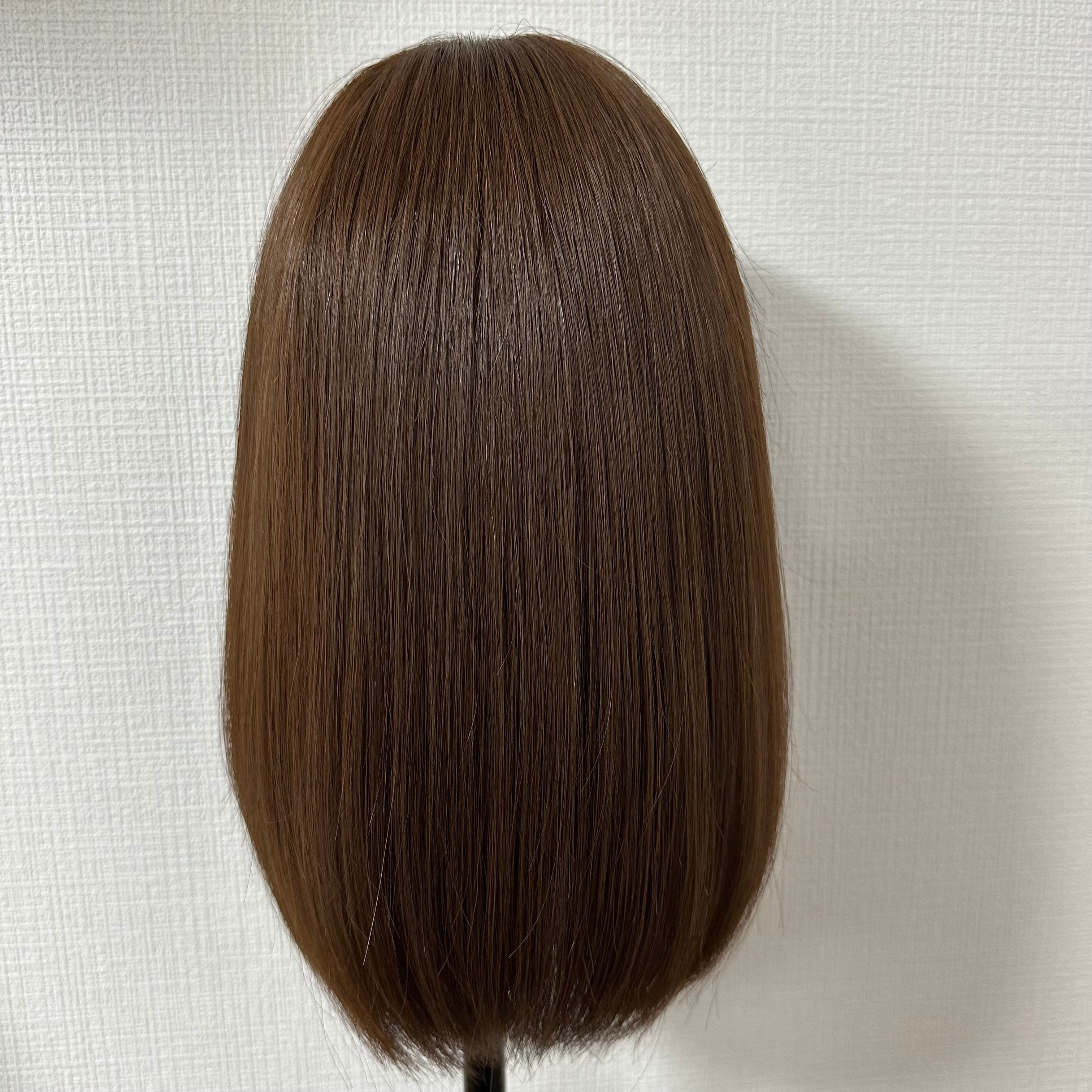 毛量減 羽ウィッグ 35cm 未カット ブラウン系 スキンレース生え際タイプ 百合子ウィッグレミー人毛100%