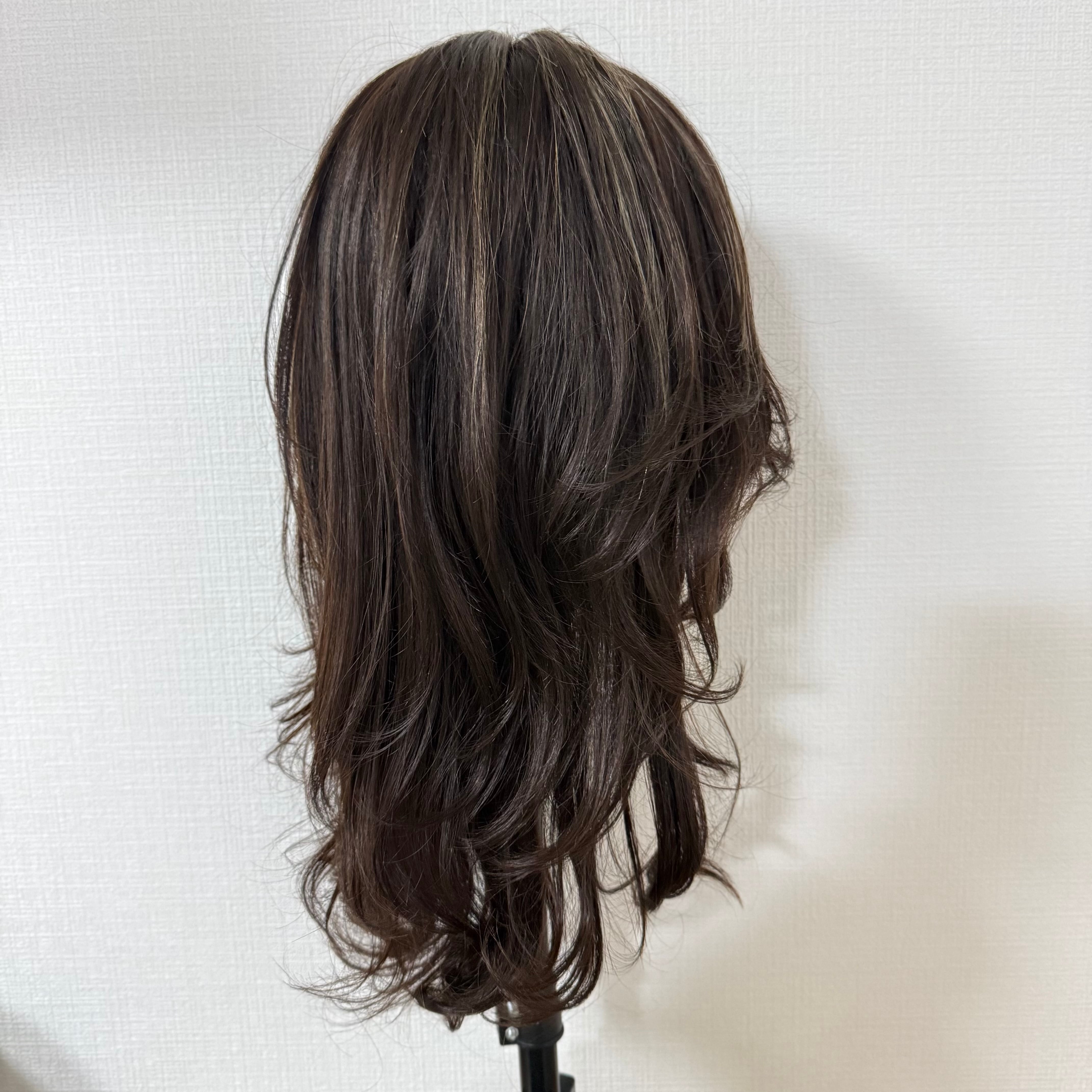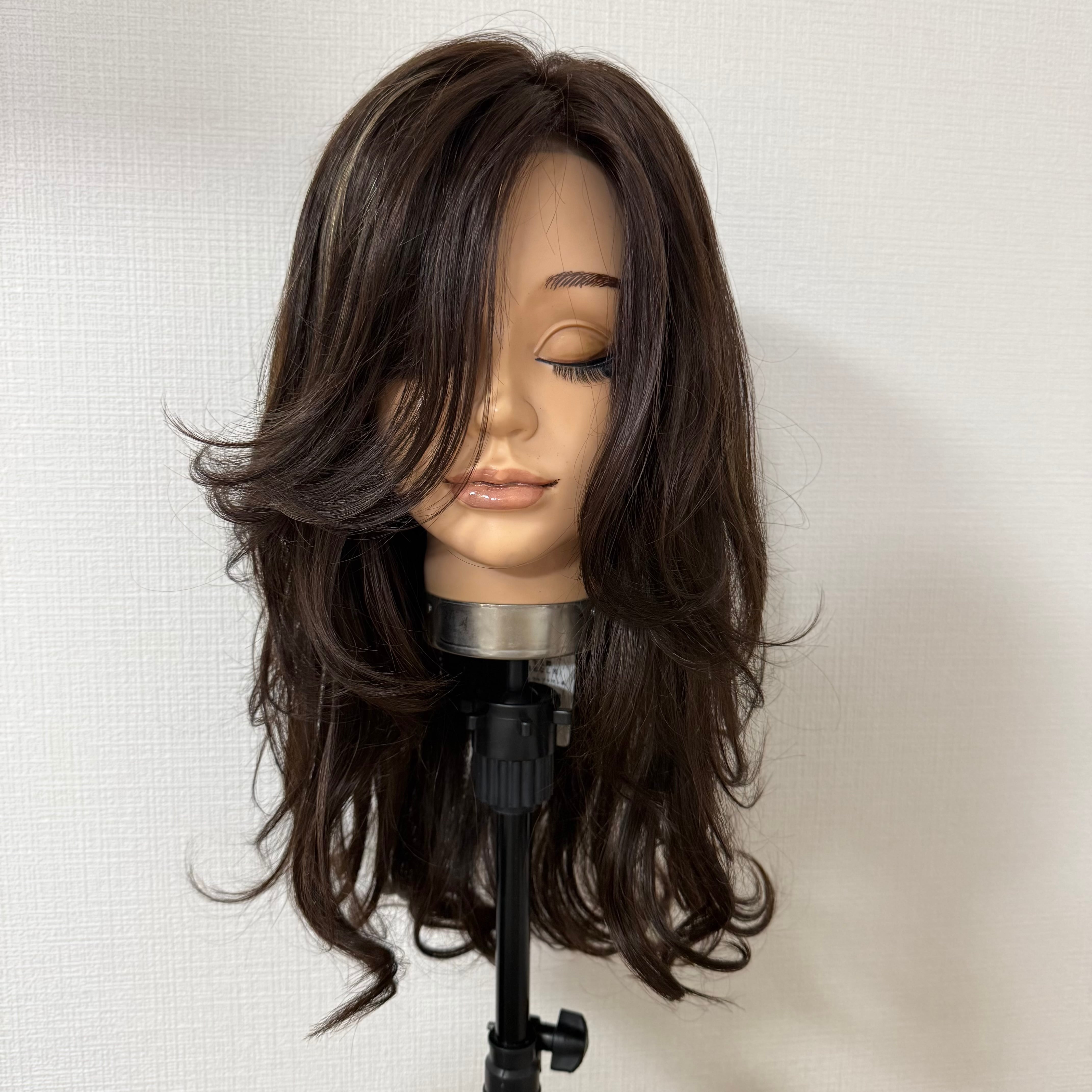 1点物 地毛なし用 商品名:メリー ナチュラルブラウン系ハイライト パーマ 百合子ウィッグレミー人毛100%
