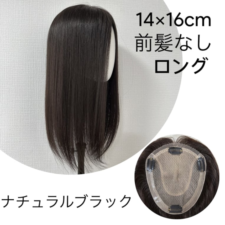 ネオピース 14×16cm ロング 40cm ナチュラルブラック 前髪あり/なし レミー人毛100%